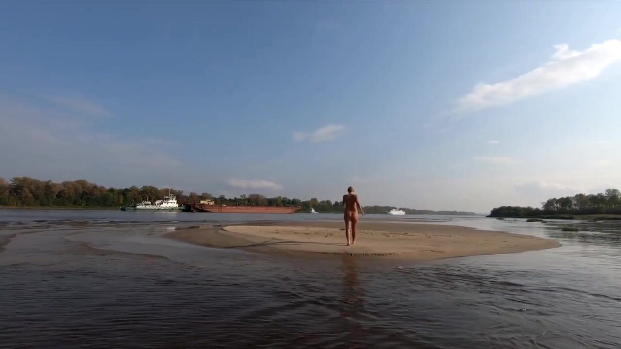 A daring blonde Russian exhibitionist with a big ass bares it all outdoors, risking public exposure as she showcases her body on a nudist beach and by a river.
