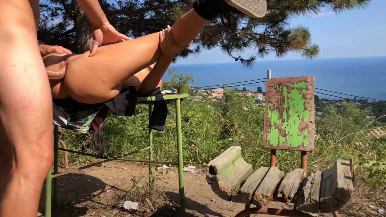 A steamy outdoor adventure with a fit babe who loves it rough! This sexy slut takes a big cock in her tight ass and pussy, with a stunning mountain and sea view.
