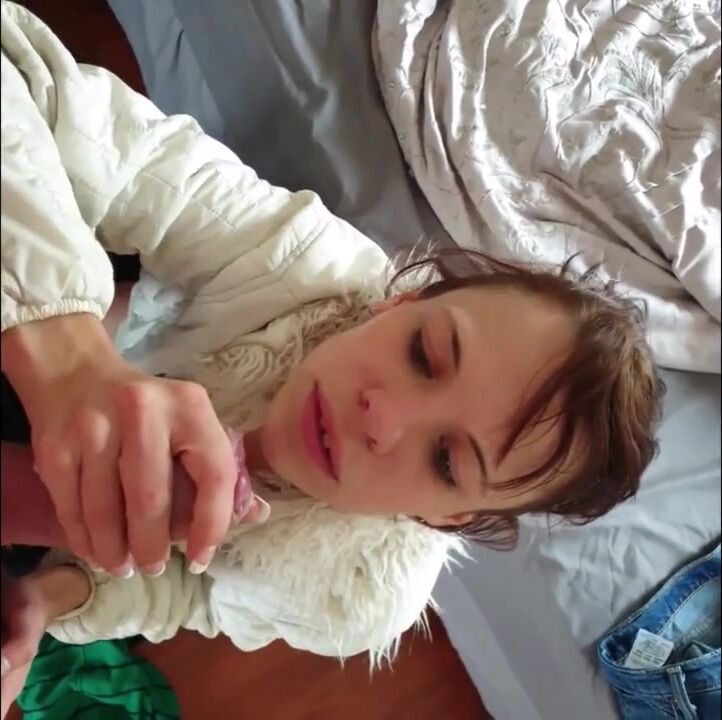 Brunette Amateur Sucks and Jerks Dick, Cum in Mouth