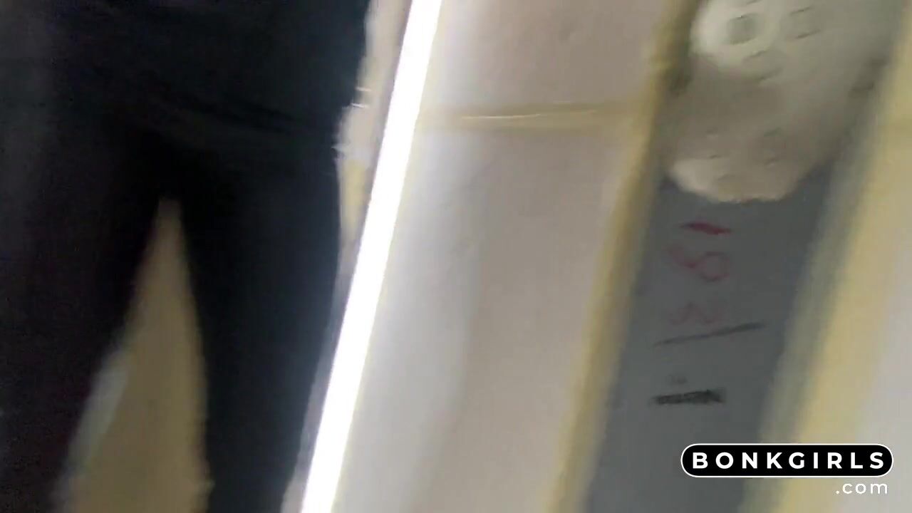 A risky public adventure! A daring amateur with a big ass and big tits loves rough sex and takes on a stranger with a big cock in an elevator, wearing leather leggings. It ends with a huge cumshot and a messy cum walk.