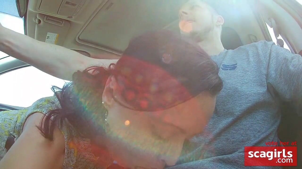 A hot mom with a sexy tattoo and a sundress shows off her amateur skills, giving an incredible blowjob to her man during a road trip. This brunette MILF loves car sex and isn't afraid of a little public nudity, as she sucks his thick dick passionately.