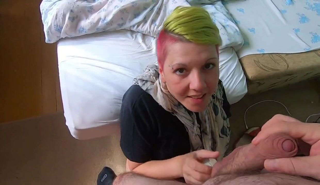 This sexy amateur girlfriend loves to please her man by sucking and licking his balls, and then swallowing his cum. Her short, colored hair contrasts with her eagerness to provide an intense and intimate blowjob, focusing on ball-sucking and jerking him off until he cums in her mouth.