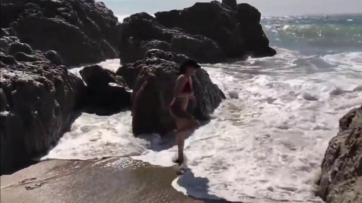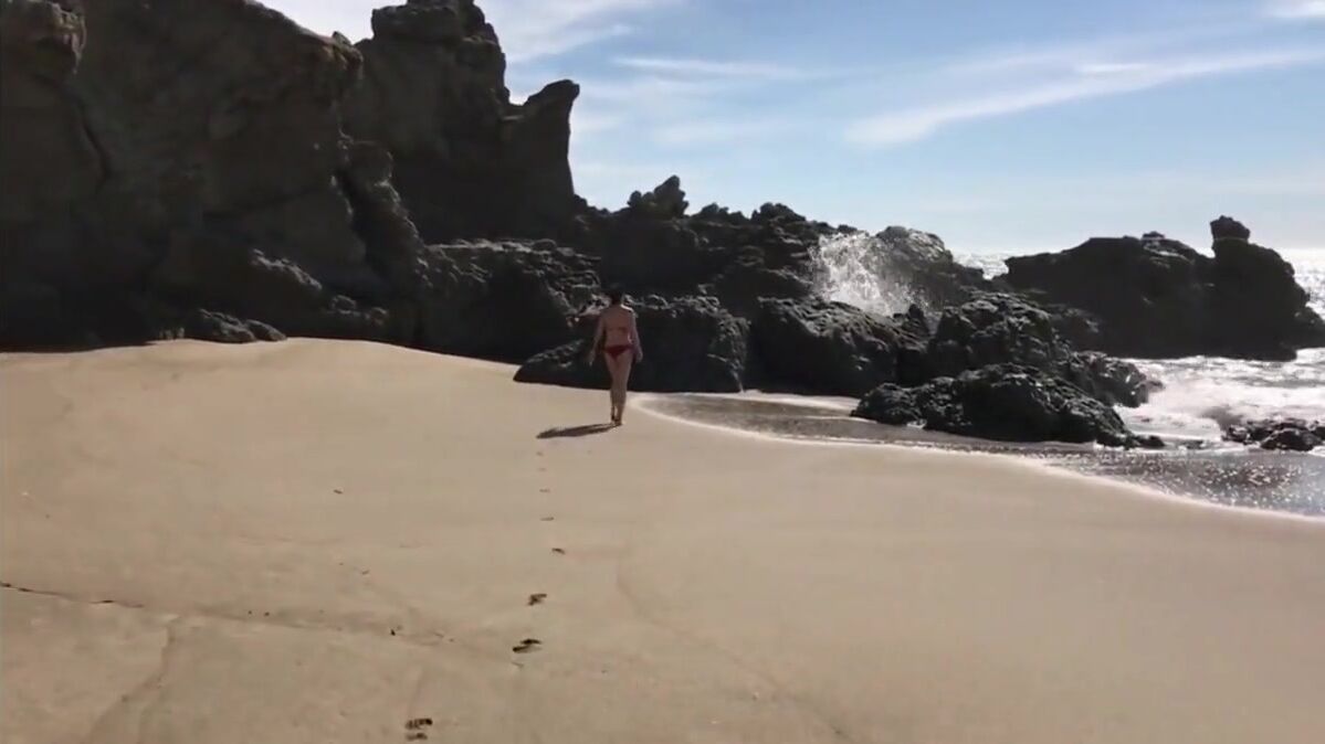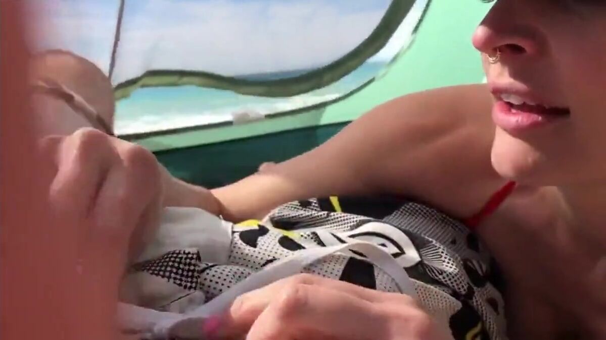 A steamy amateur video featuring a daring couple enjoying an intimate moment on a secluded beach, embracing their passion with a bold public display of affection, uninhibited by the outdoors.
