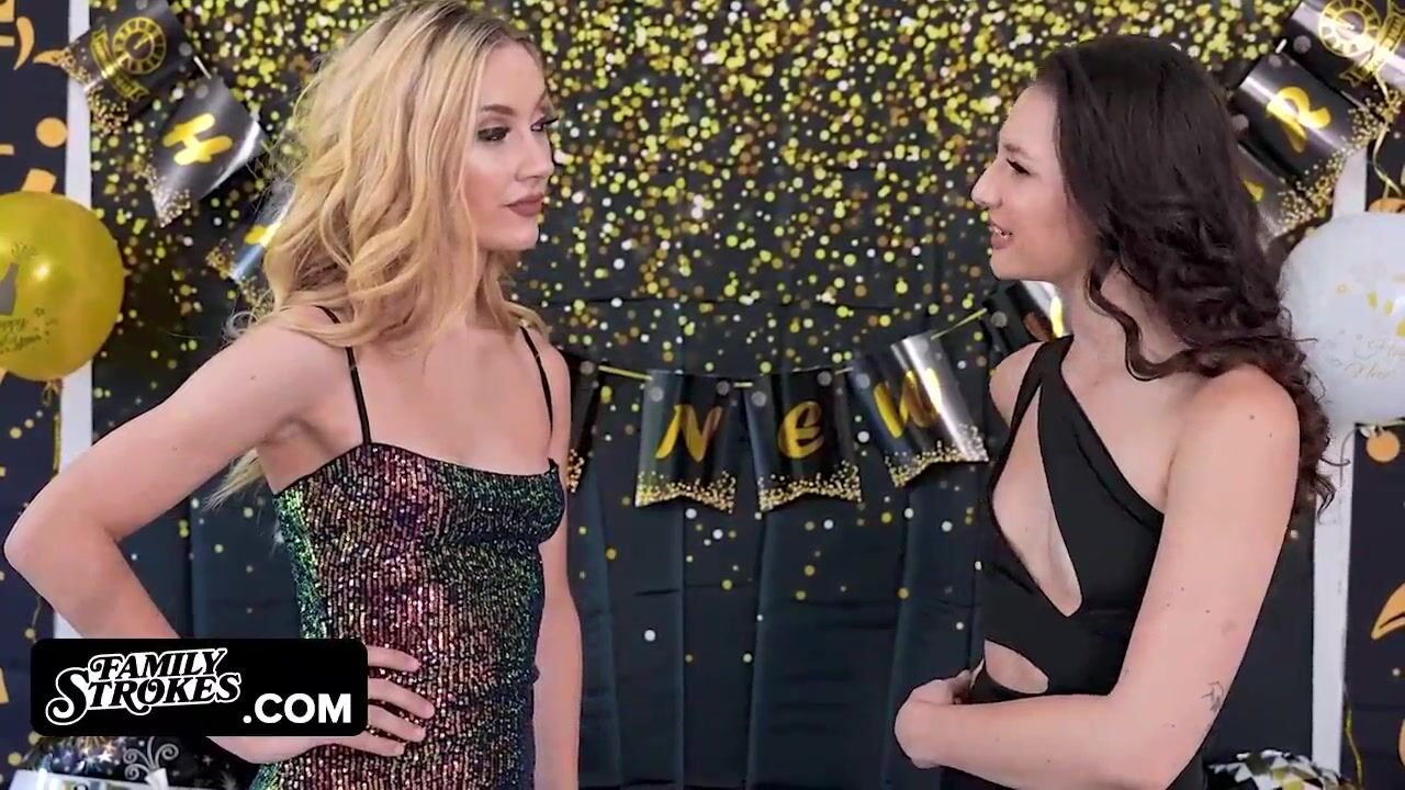 FamilyStrokes - Two Sexy Girls Invite Their Stepdad For New Year's Party And Get Too Passionate