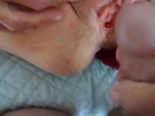wife parts her purple panties and spreads her hairy cunt for more cum on her clit