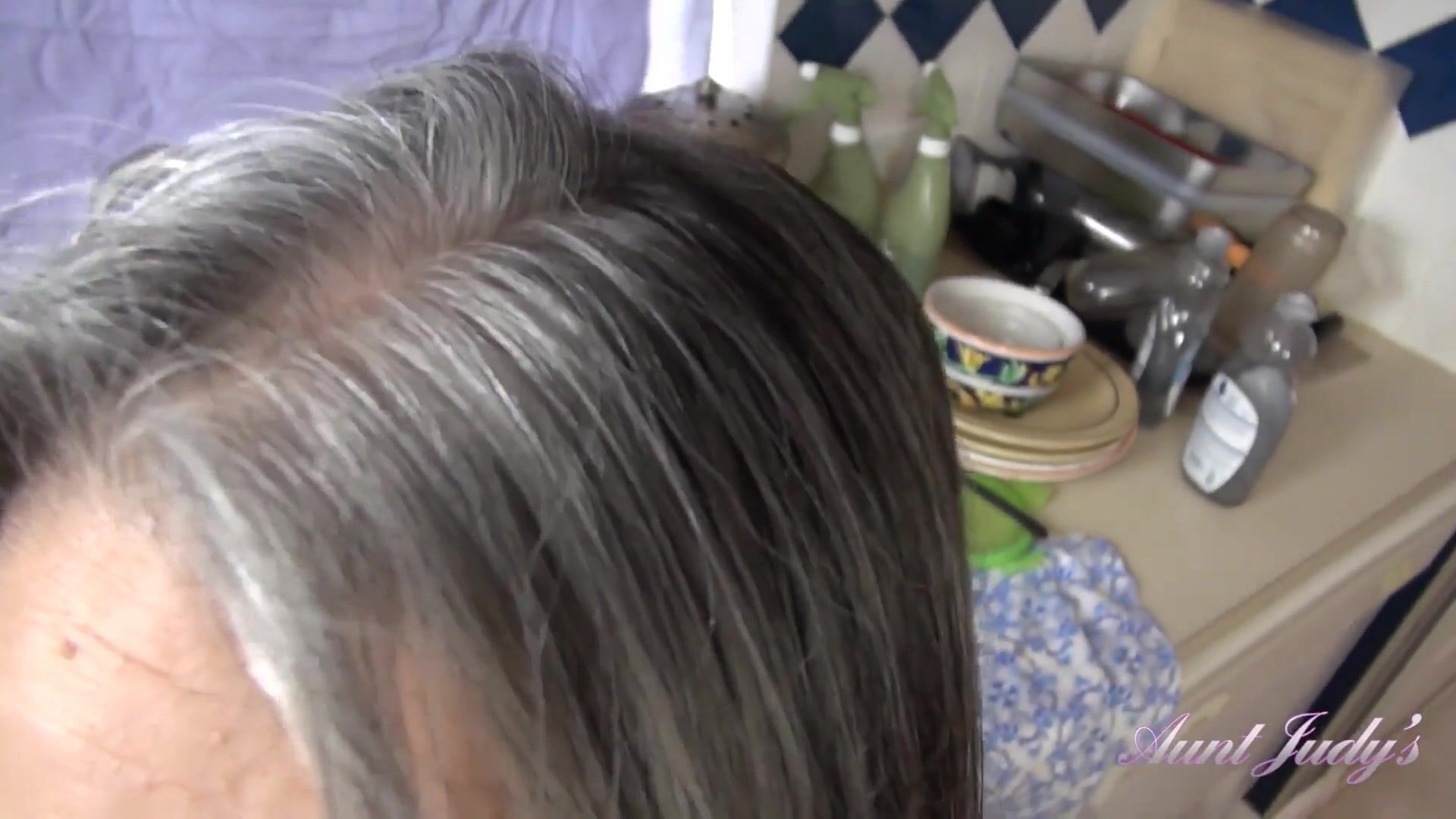 Aunt Judy's - Your Busty Step-Aunt Grace Gives You a Handjob in the Kitchen (POV)