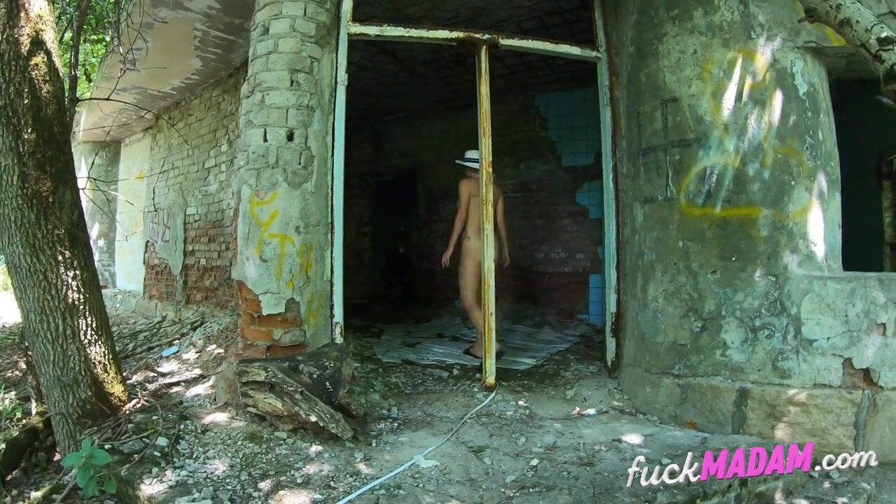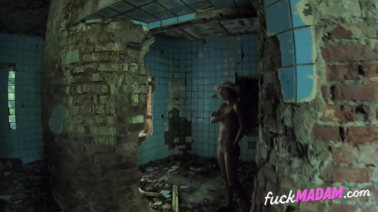 A blonde, tattooed exhibitionist ventures alone into an abandoned building, baring herself for the thrill of it. Her boldness and beauty are on full display as she explores the eerie location, her nudity a stark contrast to the desolate surroundings.