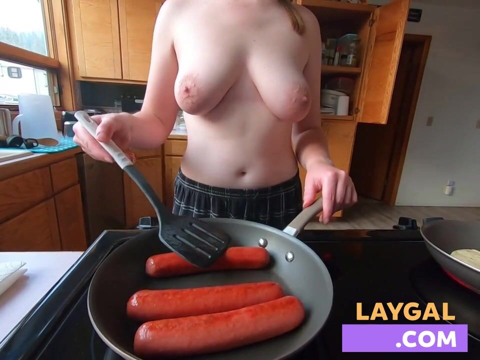 In this bizarre yet captivating amateur video, a freckled, busty housewife with a penchant for kink embarks on a wild culinary adventure, taking on three sizzling wieners in her bare-chested glory, blending humor, BDSM, and culinary arts like never before.
