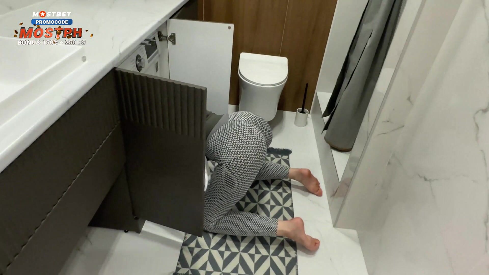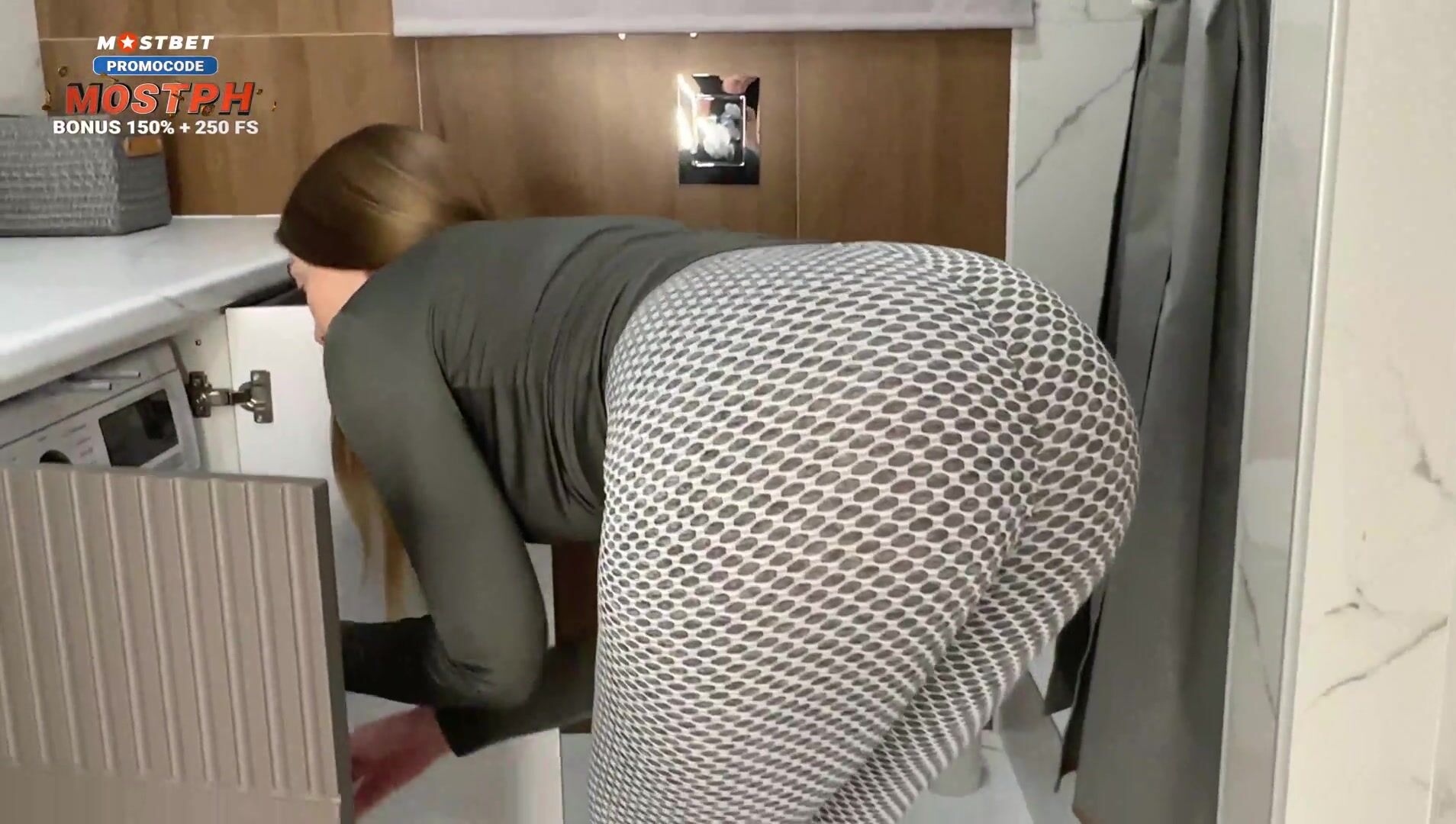 "Hey, Help Your Stepmom!" - Hot Milf Housewife In Tight Leggings with big ass Stuck In the Washer