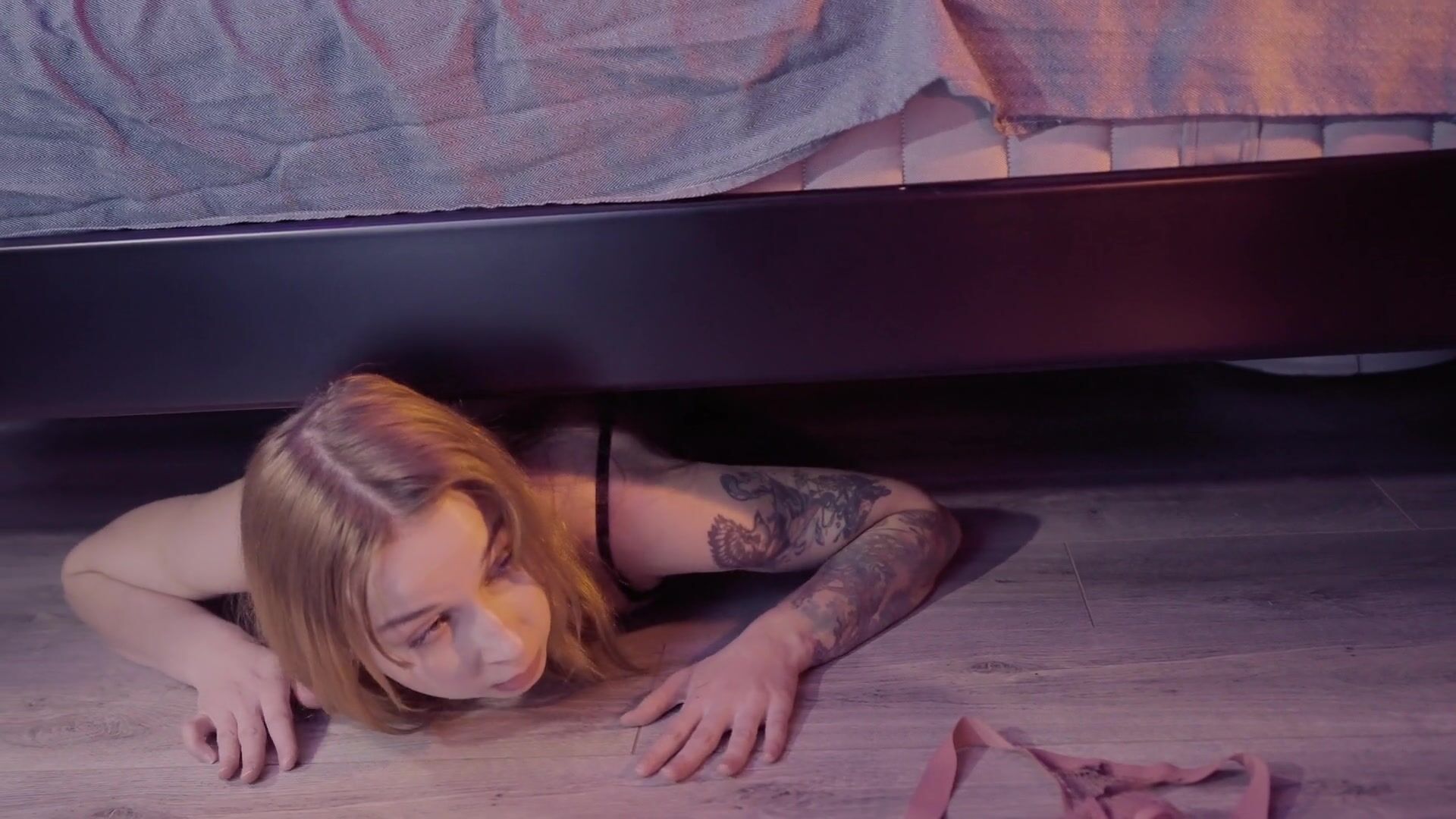 Shares bed with Step Mom while Step Sister hides under the Bed