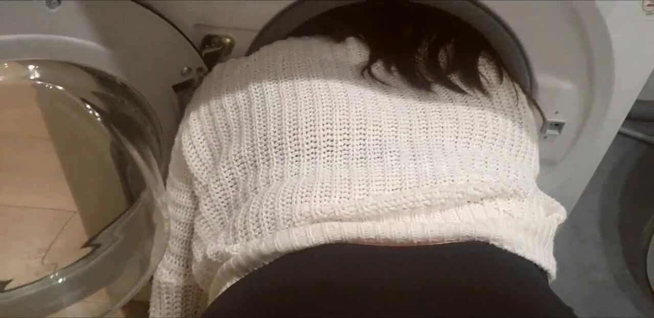 STEPMOM stuck in washing machine, fucked with bottle, fingered, fucked and finished in mouth. Enjoy it.