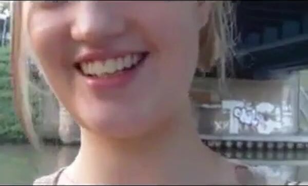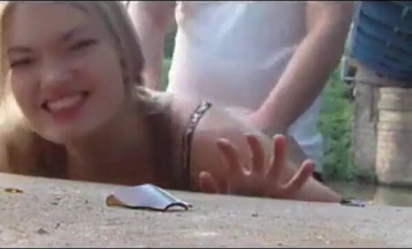 A hot German amateur blonde with amazing tits enjoys a quick outdoor fuck by the water, showcasing her sexy body and intense passion.
