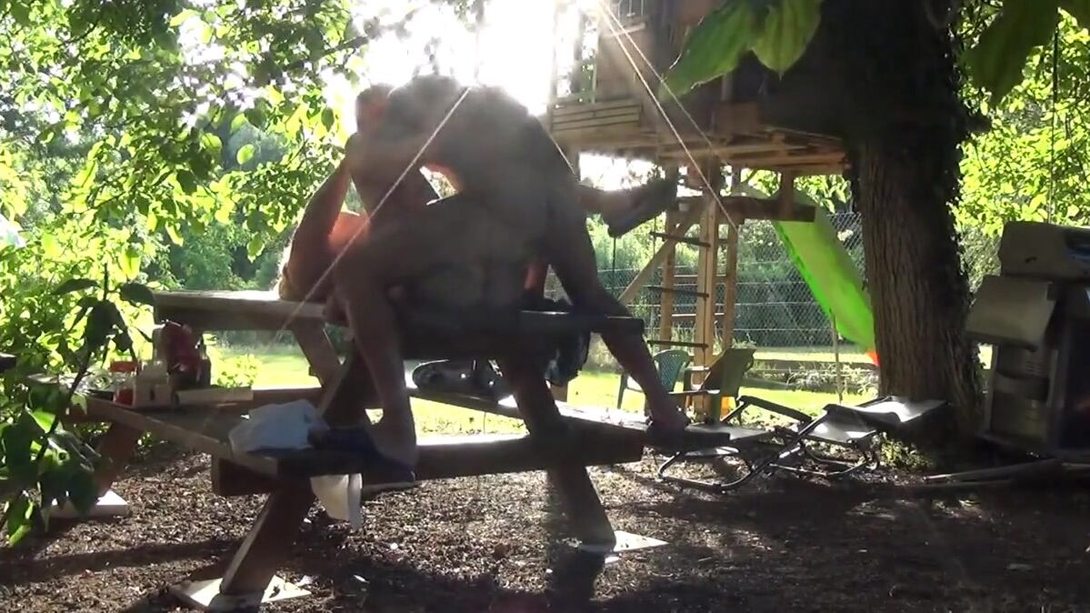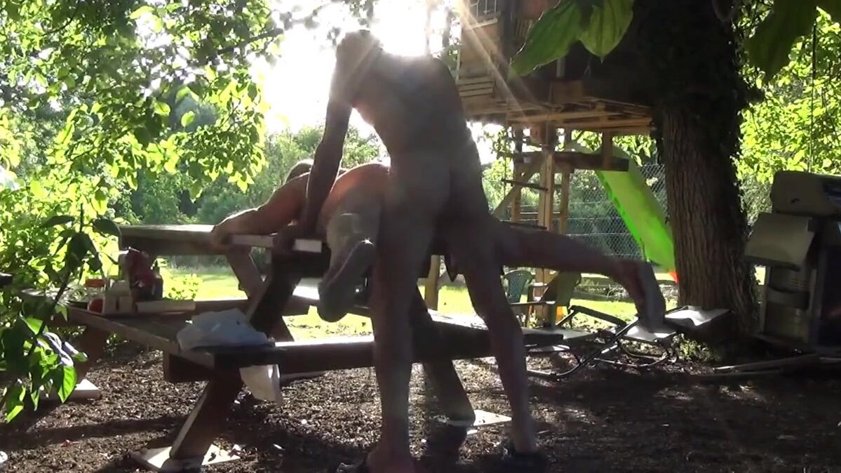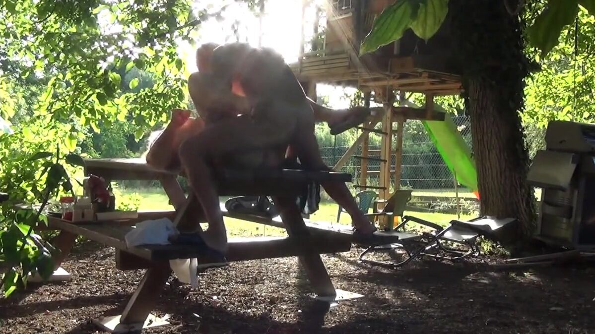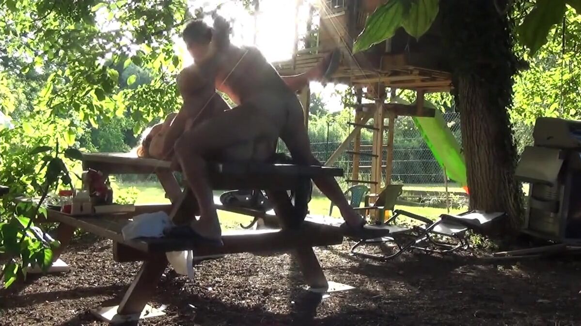 This bitch of Helene is made smash the bottom on the table of the garden in front of the neighbors, and that excites it that they masturbate by looking at it