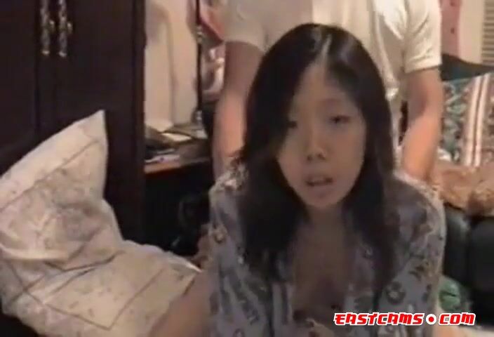 An amateur Chinese woman has passionate doggy-style intercourse with a white man, showcasing interracial desire and intense physical chemistry.