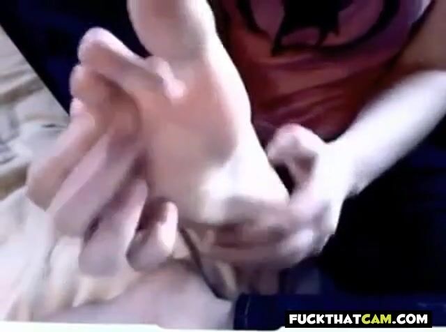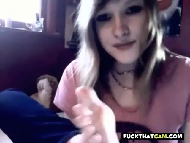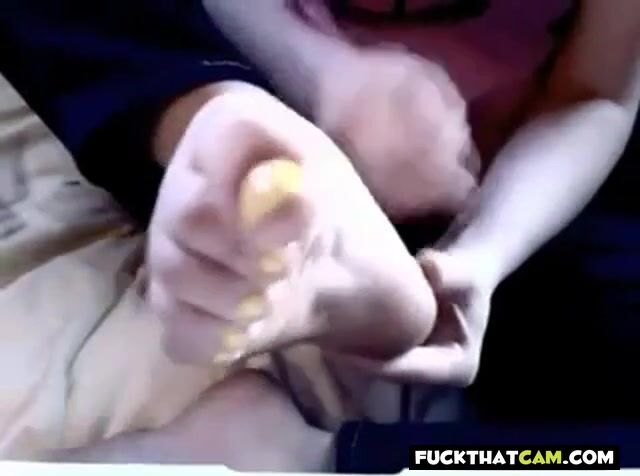 Sexy amateur webcam girl with a foot fetish indulges in a unique show, spitting on her feet and teasing viewers with her toes.