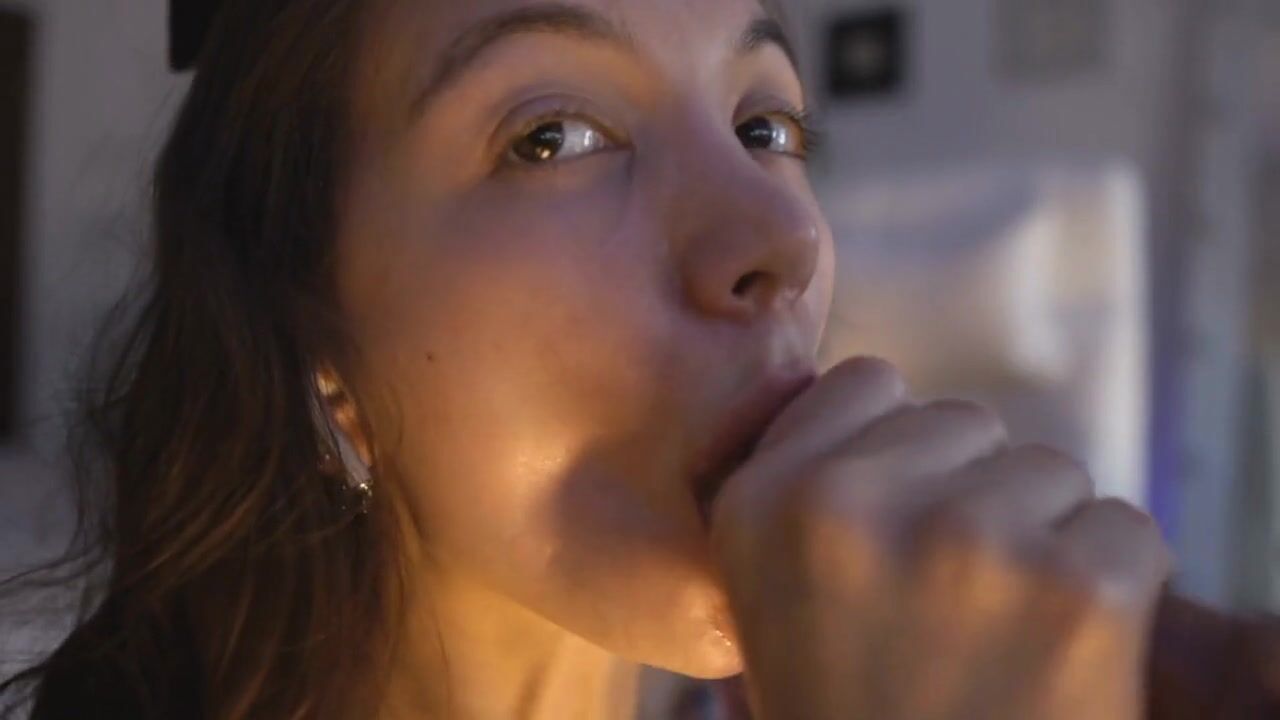 Watch this stunning brunette babe with big eyes and a cute doll-like face as she takes on a big dildo, deepthroating it and choking with drool. Her mouth and tongue work expertly, creating a sloppy, messy blowjob.
